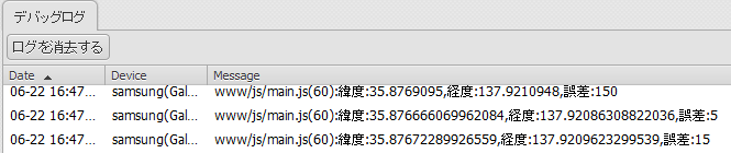 この位置情報は、じっとしていても測定誤差が変われば、callback関数が呼ばれます。測定誤差が変わる場合は多くの場合、位置情報も変化しています。