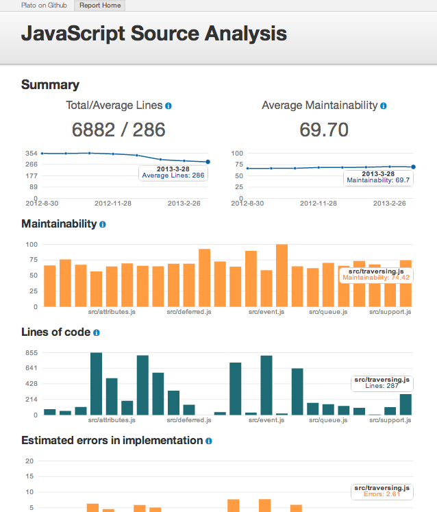 ・grunt ( http://jsoverson.github.io/plato/examples/grunt/ )