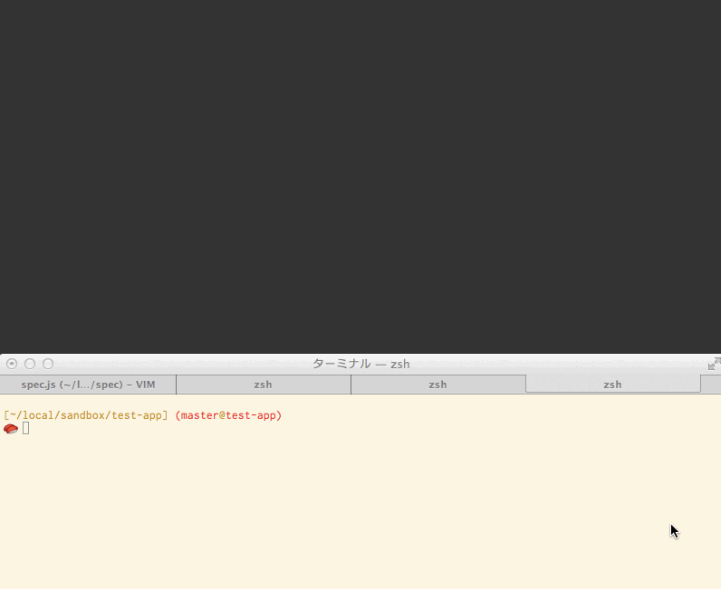 テストを書くファイルは、同じくspecディレクトリの中にspec.jsという名前で作成します。