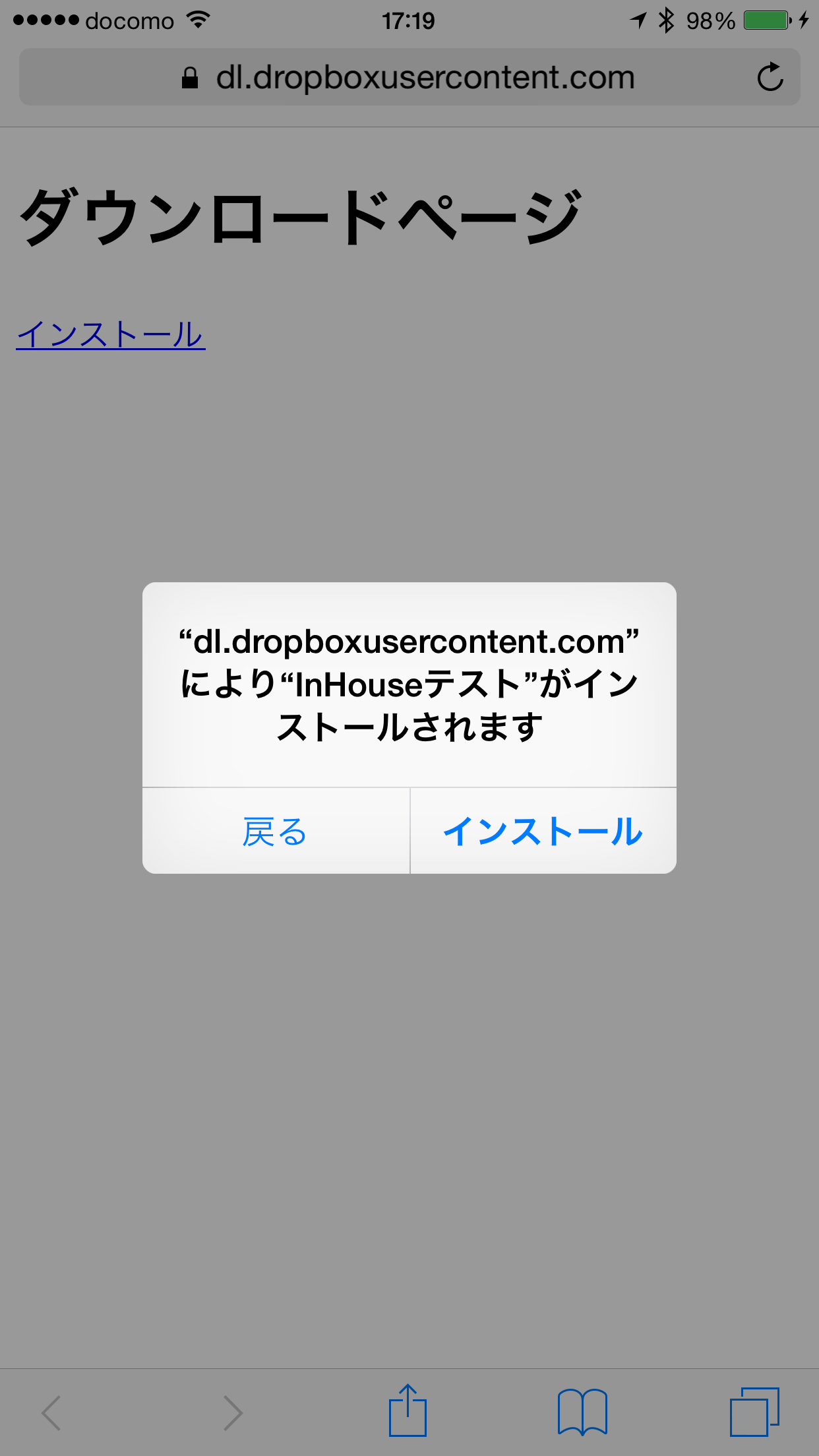 そしてこのHTMLに対してアクセスします。今回はDropboxを使っています。そしてインストールのリンクをタップします。