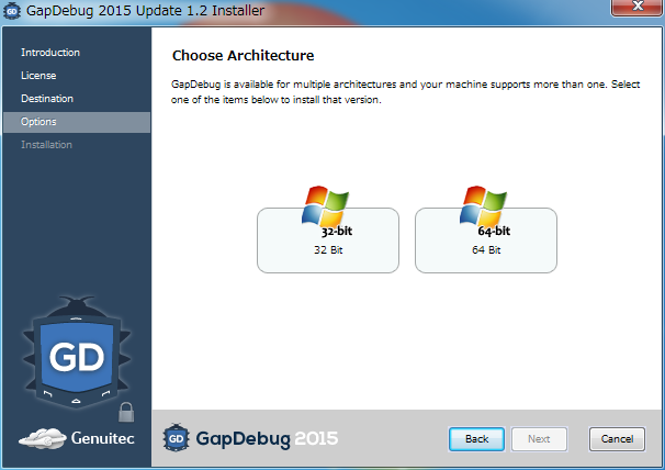32/64bitの選択画面