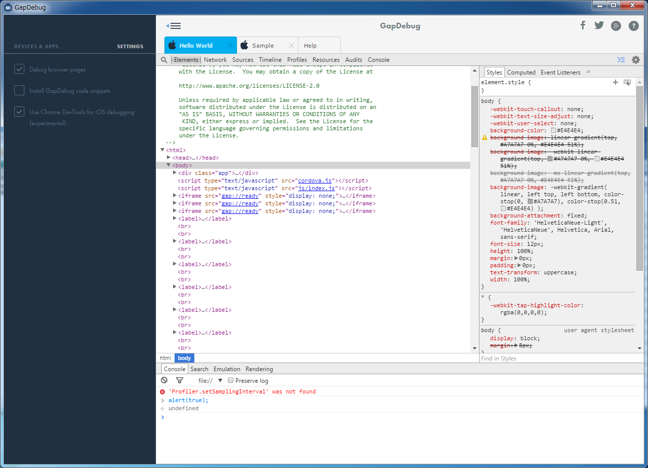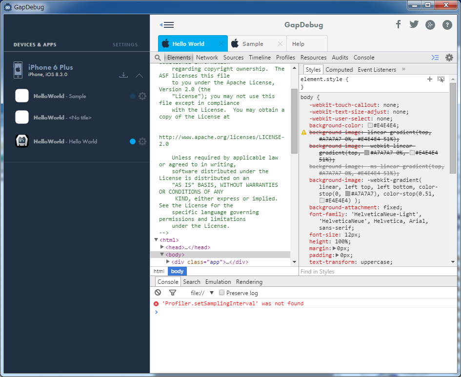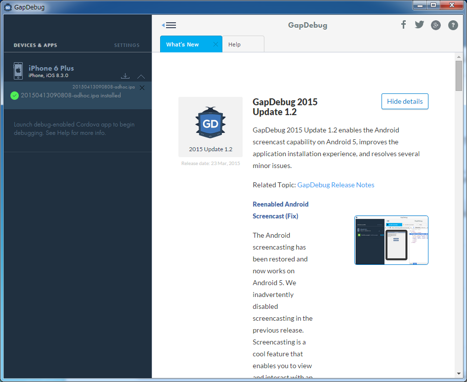 そこで紹介したいのがGapDebugです。GapDebugはWindows(Mac OSXも)向けに提供されているソフトウェアで、MonacaをはじめPhoneGapやCordovaアプリのデバッグを行うソフトウェアになります。
