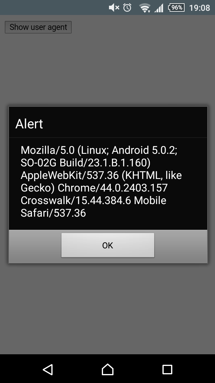 ユーザエージェントでWebViewのバージョンを確認してみます。