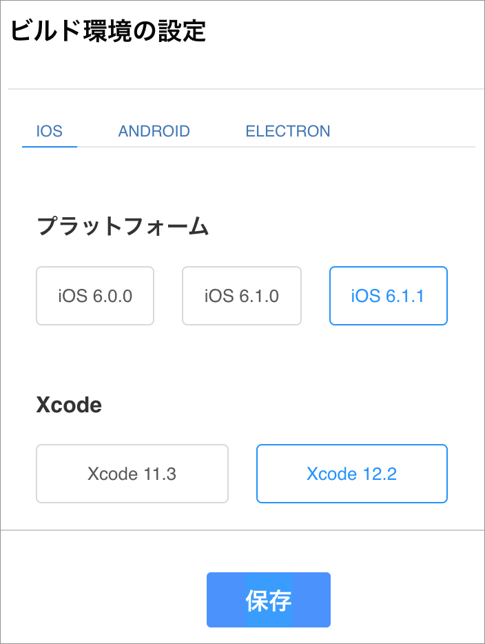 ビルド > ビルド環境の設定 > Xcode > Xcode 12.2