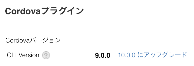設定 > Cordovaプラグインの管理 > Cordovaバージョン > 10.0.0にアップグレード