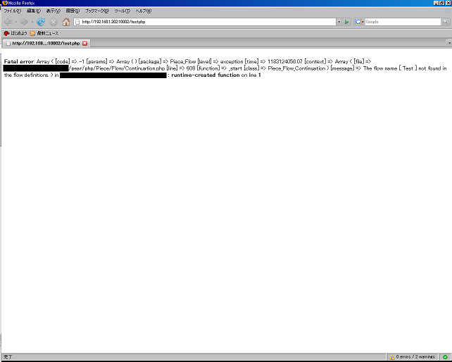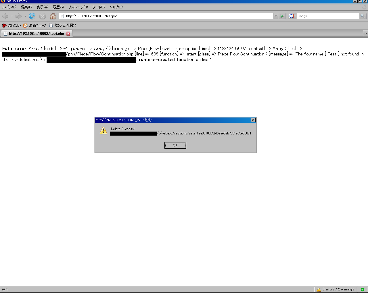 Piece Frameworkはフローの初期から終了時までのデータをセッションに保存しておきます。そのため、アプリケーションの実行途中でフローの流れを変えるようなスクリプトを作成すると、すぐにエラーが出てしまうのです。これは新しく機能を追加した場合などにも当てはま ります。新機能を付けるたびにエラーが出ちゃうのです。