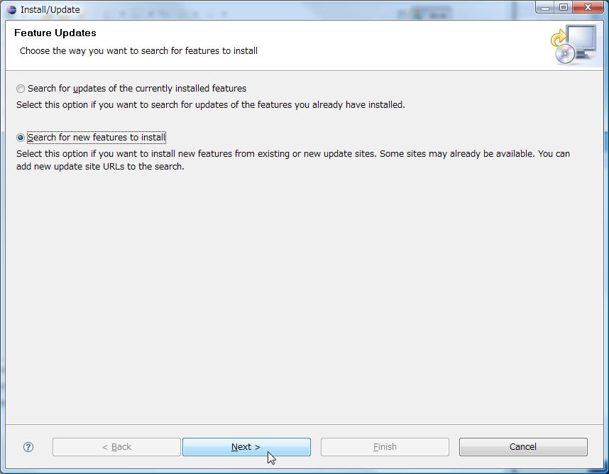 [Search for new Features to install]を選び[Next]をクリック