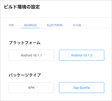 Androidプラットフォーム 10.1.2の設定は、MonacaクラウドIDEのビルド環境の設定画面から行うことが出来ます。