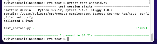 APPIUM_SERVER = "http://127.0.0.1:4723/wd/hub"ターミナルからpytestを実行すると自動テストが開始されます。