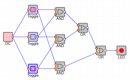 1つ1つは単純な動作しかしない論理回路を複数組み合わせることで、複雑な動作をさせることができる。そのことが体験的に学べる題材になっています。