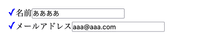 このサンプルでは、フォーム入力が有効か無効かに基づいて、ラベルにチェックマークまたはバツマークを表示します。:has疑似クラスを使って、隣接する入力フィールドの検証結果に応じたスタイルをラベルに適用します。