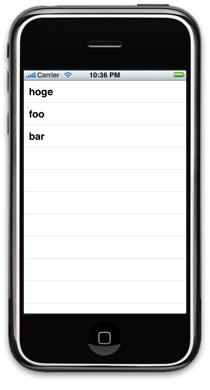 テーブル内の行数設定は、tableView: numberOfRowsInSection: というメソッドで行われます。