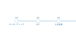 入社後は「オンボーディング → OJT → 正式配属」という流れで業務に携わっていきます。