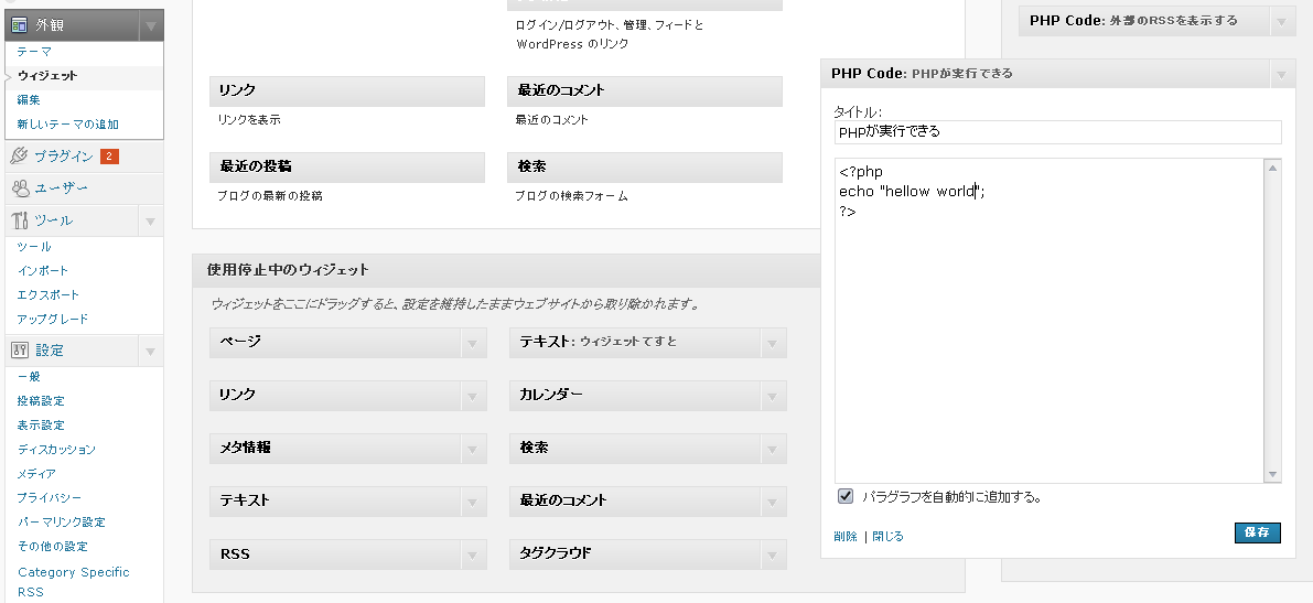 3.ウィジェットでPHPを実行させるプラグインを導入し、