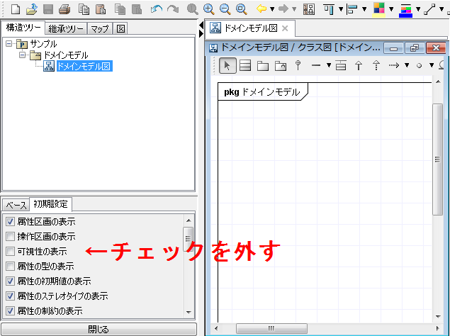 モデル名と属性だけ見えれば良いので、その他の情報を非表示にします。
